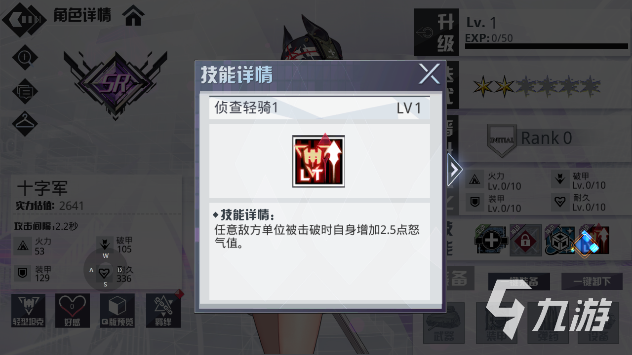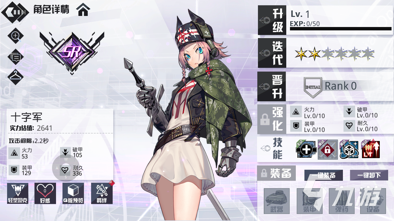 十字軍這個(gè)角色在品級(jí)上是SR的一個(gè)設(shè)定,品級(jí)還是不錯(cuò)的,雖然說(shuō)不是最高的,但基礎(chǔ)能力也還行。在定位上是輕型坦克,綜合能力上會(huì)有一定的優(yōu)勢(shì)。攻擊的技兩個(gè)是2.2秒,這個(gè)在輕型坦克里面也還不錯(cuò)的。