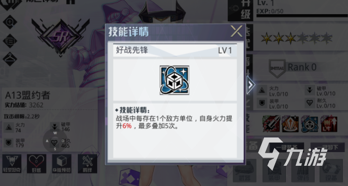 被動技能“好戰(zhàn)先鋒”,在戰(zhàn)斗的時候戰(zhàn)場上敵人數量每提升一個,那么火力屬性就可以提升6%,最多疊加五次。這個屬性雖然說是疊加的,但是提升很大,30%的提升可以讓輸出能力獲得質的飛躍。