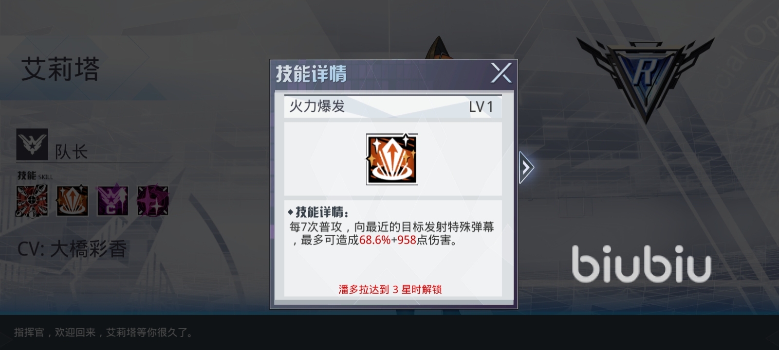 首先艾莉塔在這款游戲中屬于R型的游戲角色,外形非常的精致可愛,其次玩家也要知道R型角色在這款游戲中屬于比較好好獲取的游戲角色,雖然品質看起來沒有SSR或者UR那么高,但卻是游戲玩家前期最容易獲取的游戲角色了。而且他屬于輸出型的游戲角色,在游戲的前期能夠帶來比較大的輸出。
