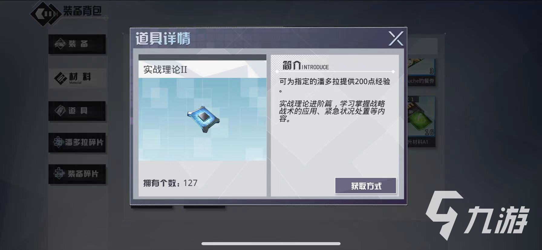 實戰(zhàn)理論是游戲內(nèi)最基礎(chǔ)的道具了,它主要用于幫助角色提升等級。目前游戲內(nèi)實戰(zhàn)理論一共分為三個等級,等級越高,所能為玩家提供的經(jīng)驗就會越多。