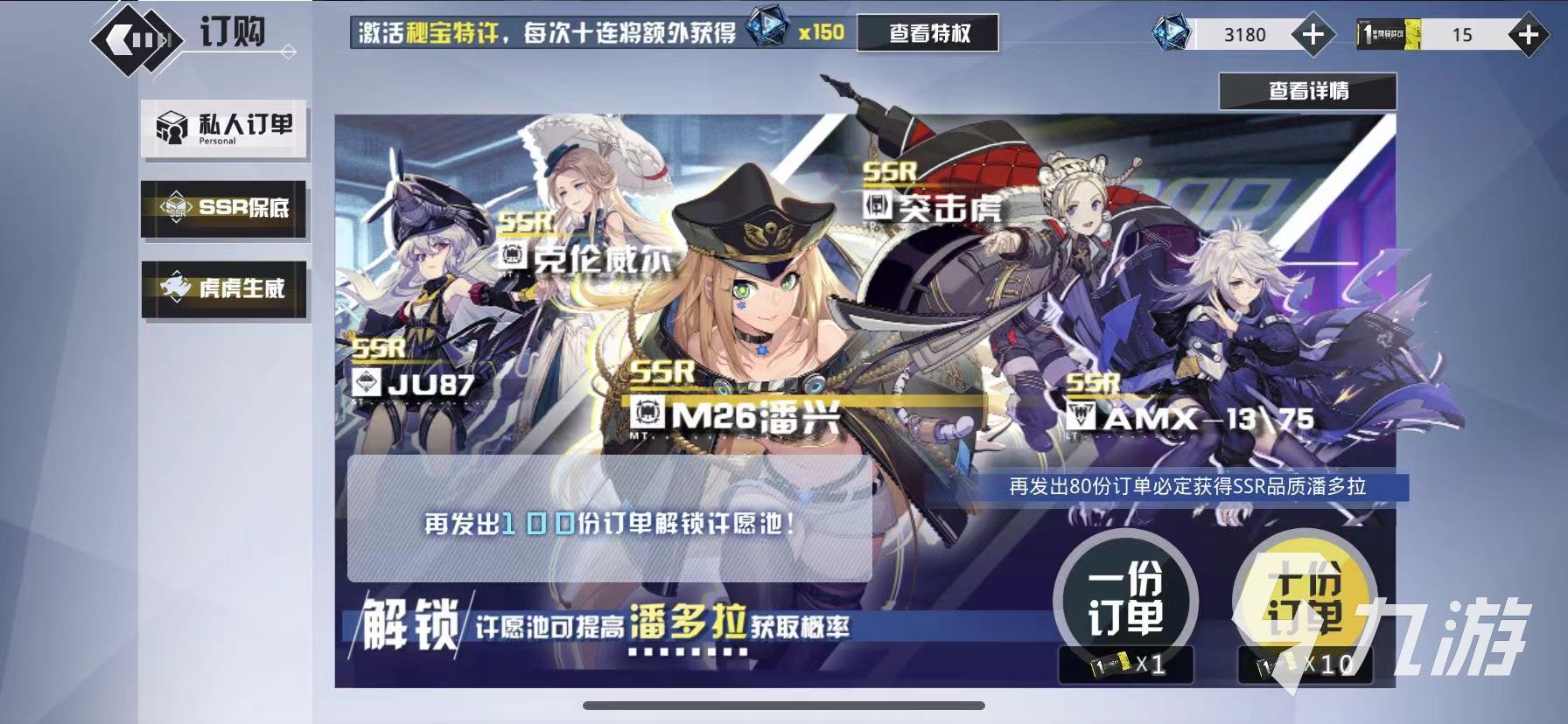 目前游戲內(nèi)獲取該角色的方法一共有3種,第1種就是通過訂購獲取,玩家可在游戲主頁面找到訂購板塊,點(diǎn)擊進(jìn)入之后里面會(huì)有三個(gè)召喚界面,玩家花費(fèi)一定的結(jié)晶就可進(jìn)行召喚,召喚將有一定的概率可以獲取JU87中隊(duì)。