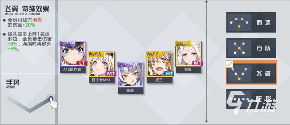 飛翼陣型能夠?yàn)檎麄€(gè)潘多拉的編隊(duì)提供非常大的傷害加成。