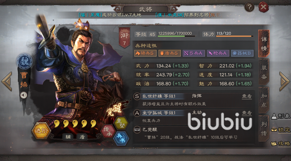 副將曹操:在這里主要是為夏侯淵提供傷害增益的,因此技能帶輔助的增傷技能鐵騎驅(qū)馳和兵種虎豹騎。