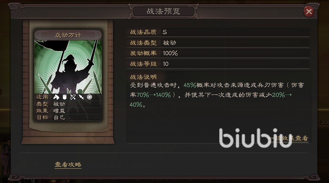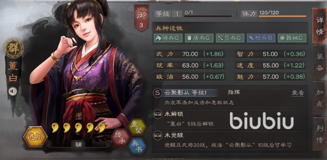 這個(gè)則是s12另一位新武將董白的自帶戰(zhàn)法了,不同于上面的,它則是一個(gè)s級(jí)的指揮技,其具體的效果就是能夠讓隊(duì)伍里武力最高的人給自己扛一次普攻,而且為對(duì)方附加一個(gè)反擊以及急救的效果。