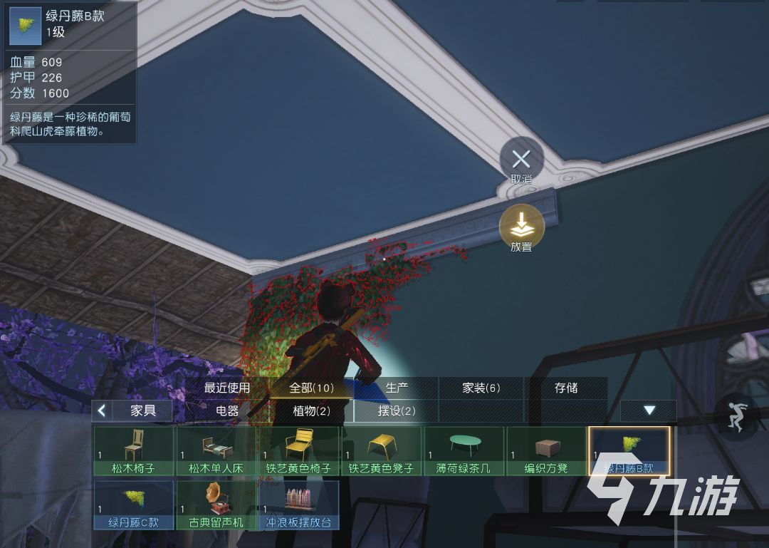 然后是資源的儲備,資源是游戲進程中不可或缺的,但背包的容量卻十分有限,所以莊園的儲物柜就顯得十分重要。莊園的建造功能十分的具有可玩性,當我們站在可建造的范圍的時候,屏幕上就會額外出現一個建造圖標,只要點擊進去,就可以進入建造模式。