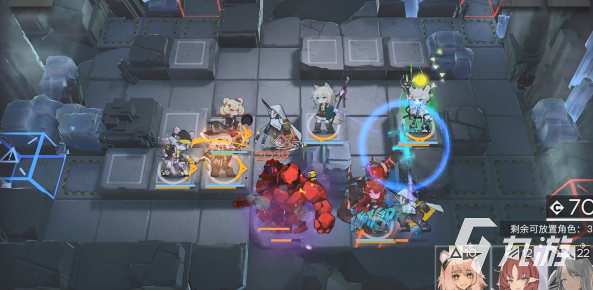 當?shù)诙嚾輥硪u,石頭人、泥巖陸續(xù)趕來,極境地圖可以開啟技能之后,打開波速。在地圖右邊的孤島,玩家放置一個潔哥,帶來減速效果,這里還可以用苦艾替換。