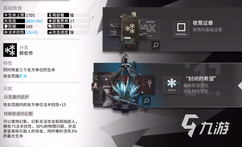 專屬模組為封閉的希望,它的基礎(chǔ)數(shù)值變化為攻擊增加40,法術(shù)抗性增加5,并且還有一個分支特性,攻擊范圍會擴(kuò)大。