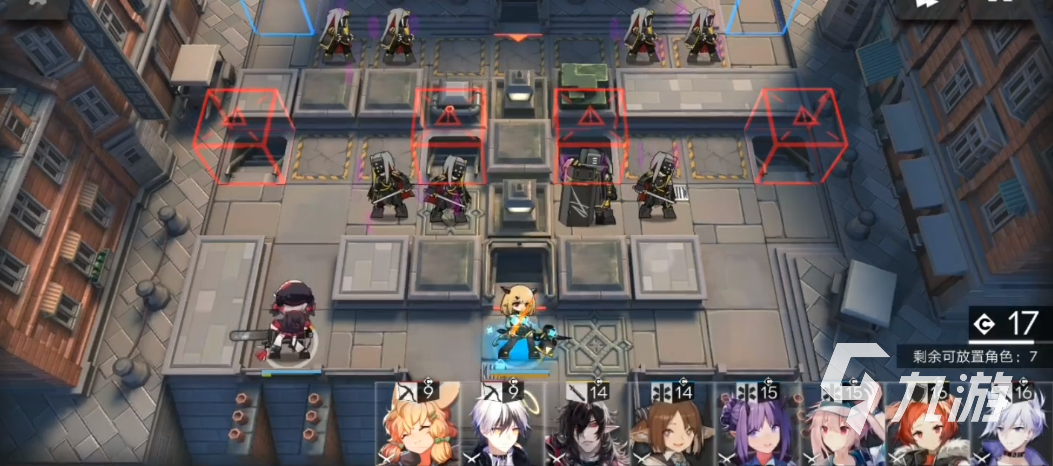 在戰(zhàn)場的最左上角大家可以部署一個(gè)先鋒香草用來抵擋敵人的攻擊,然后在戰(zhàn)場中間的位置哪里的站臺(tái)上部署遠(yuǎn)山,這樣能夠增強(qiáng)群體輸出的能力。