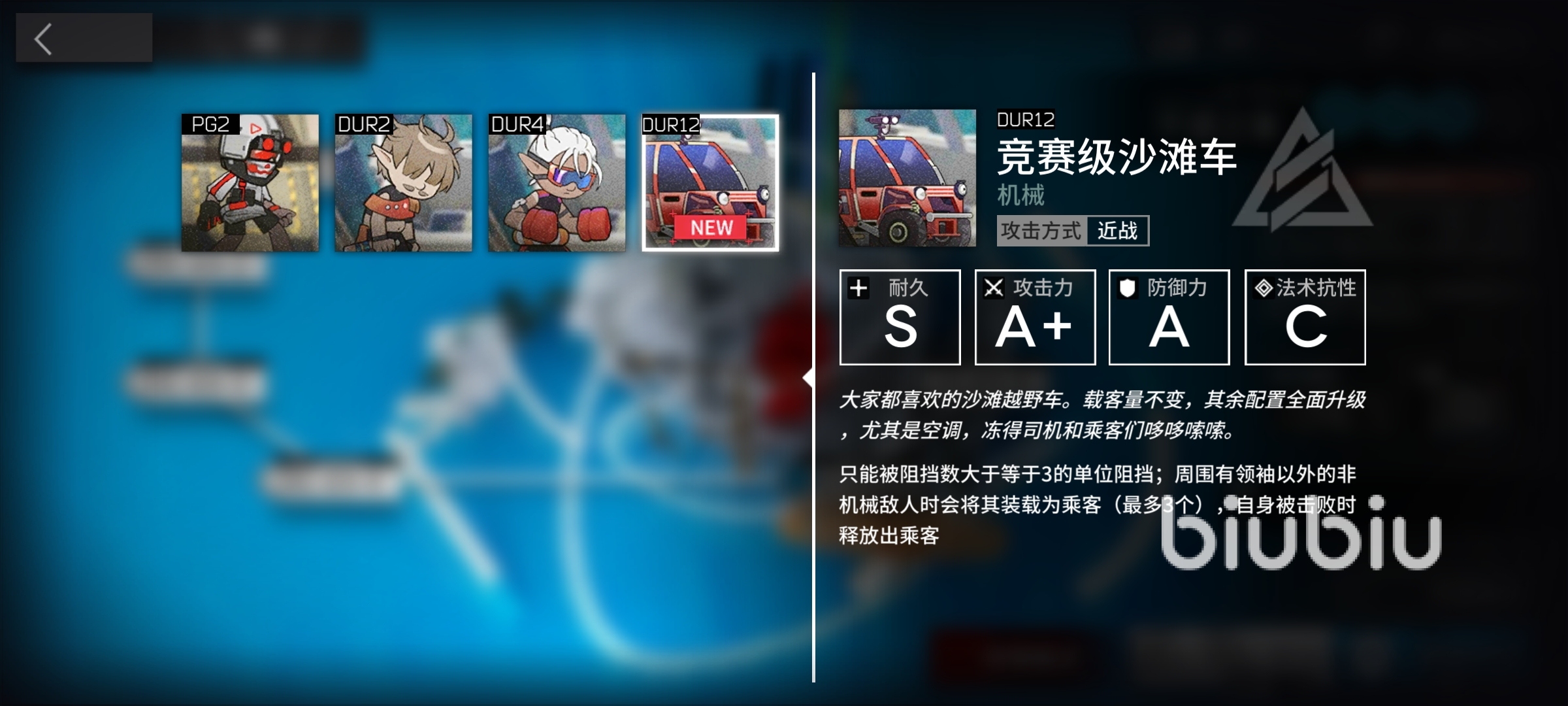 處理競賽級沙灘車的時候需要將它用重裝干員阻擋住,防止它接近敵方單位載客,然后將要經(jīng)過它的敵方單位快速處理掉。