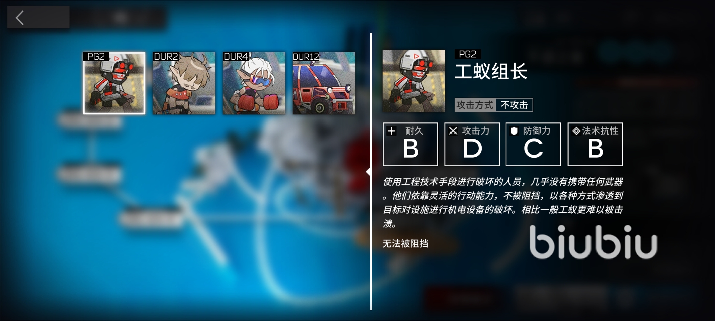 工蟻組長,面板較低,且不會對我方干員造成攻擊,看起來弱,卻因為他不被阻擋的特性,能夠自由穿梭在戰(zhàn)場之中,因此實力雖弱,卻讓人頗為頭疼。