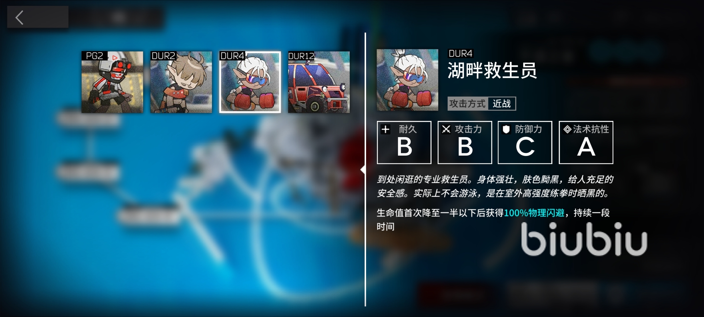 雖然湖畔救生員的防御力較低,法術(shù)抗性較高,但是因為他在首次生命值降低到一半以下的時候會獲得百分百物理閃避的特性,在處理湖畔救生員的時候最好還是使用能夠造成法術(shù)抗性的干員。