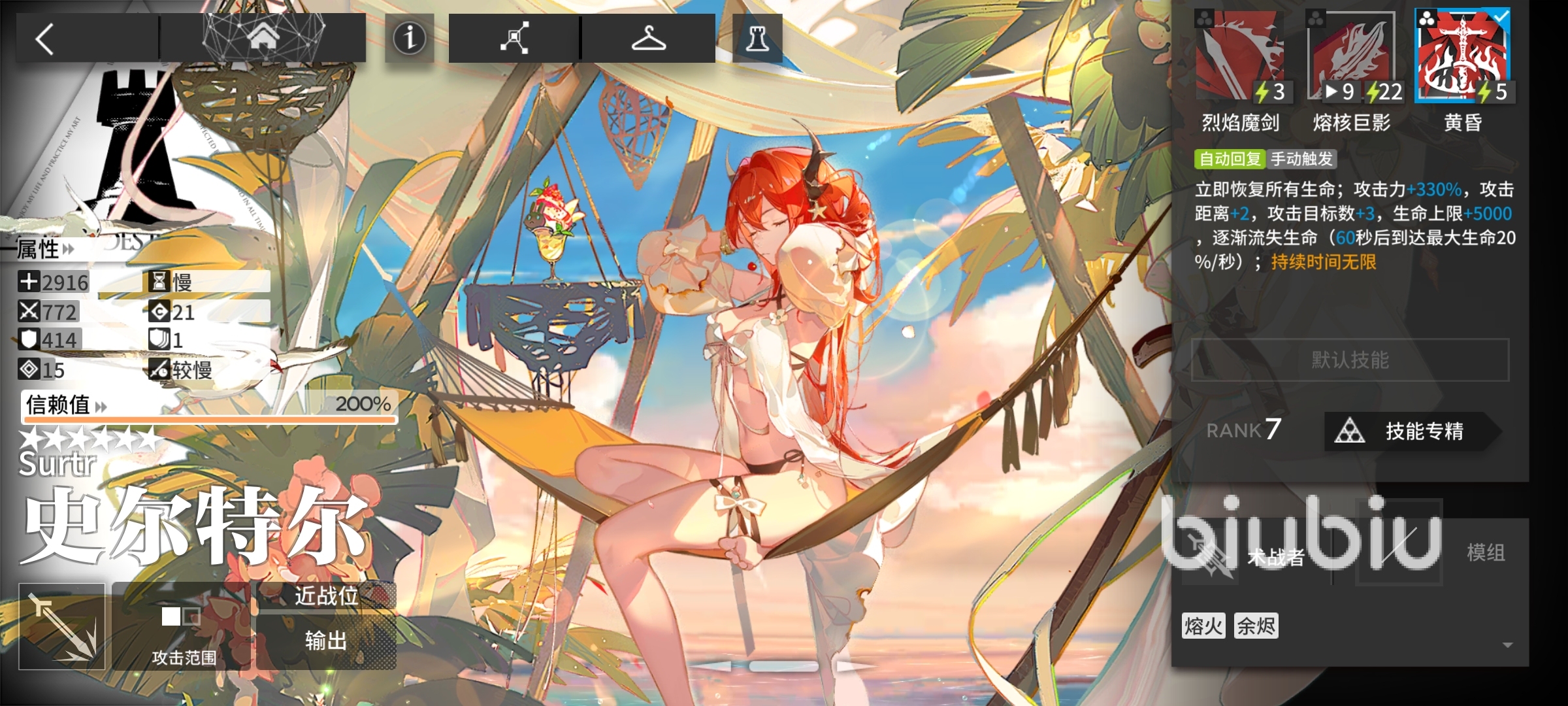 史爾特爾是法術(shù)傷害的頂點之一,她的三技能黃昏開啟時傷害非常高,而她的第一天賦熔火會減少敵人的法術(shù)抗性,這一天賦配合她的三技能黃昏對敵人造成毀滅性的法術(shù)傷害,而極低的SP需求非常適合開局。