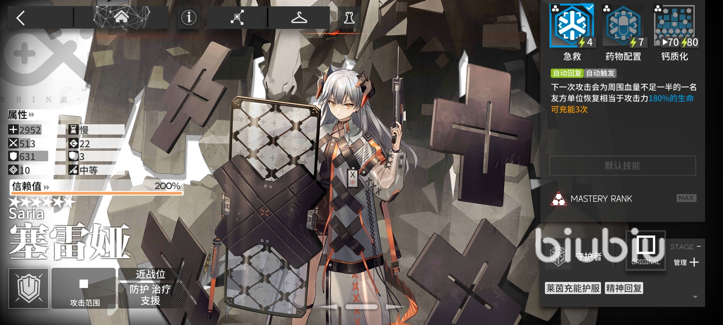 守護者塞雷婭因第一天賦萊因充能護膚,使得她有著強大的戰(zhàn)場能力,而技能急救在關(guān)鍵時刻會對血量較低的隊友展開緊急治療,補充隊友的血量,其能充能儲存的特性使得塞雷婭在緊急時刻能極大的緩解戰(zhàn)線壓力,這一技能加強了需要直面深池伙友影刃的輸出干員的生存能力。