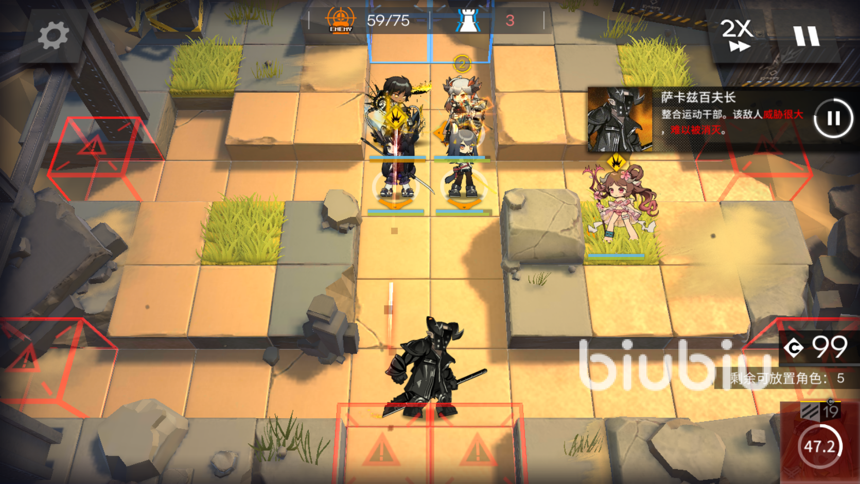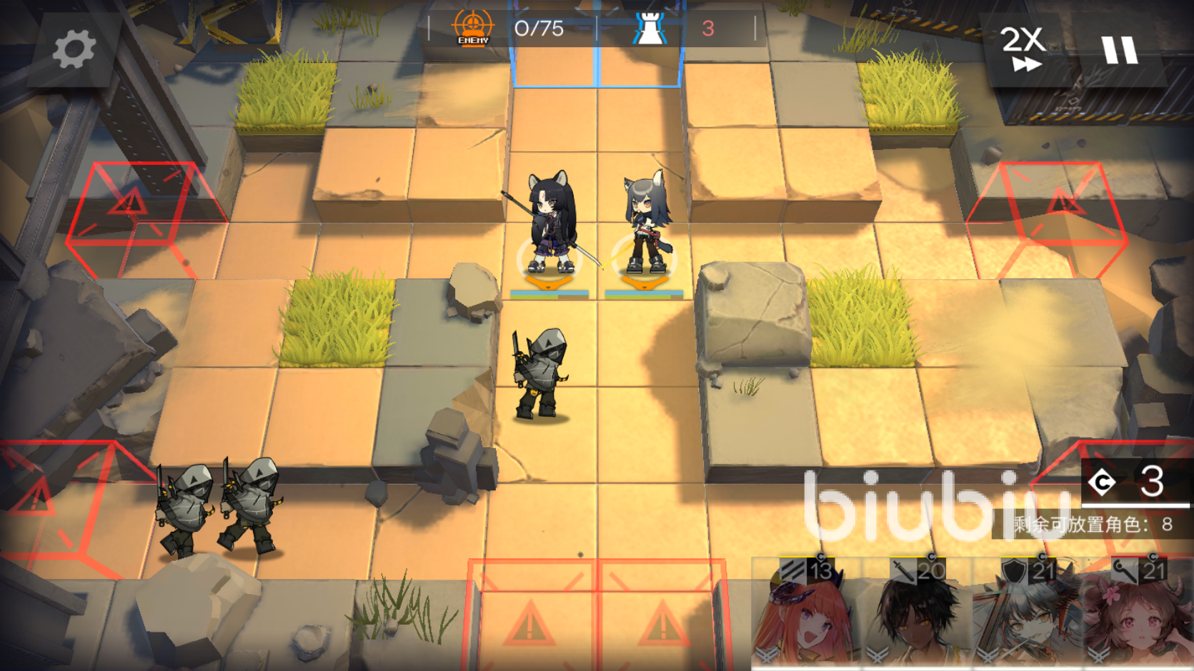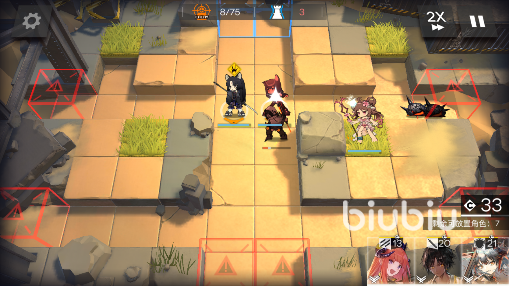 緊接著在先鋒背后部署遠攻近衛(wèi)以及奶盾即可順利度過前中期,最后的BOSS薩卡茲百夫長出現(xiàn)后立馬開啟所有干員的輸出技能將其秒掉,否則他會一次攻擊三個我方干員,很容易就沖破防線。秒掉BOSS后就可以掛機等待通關了。