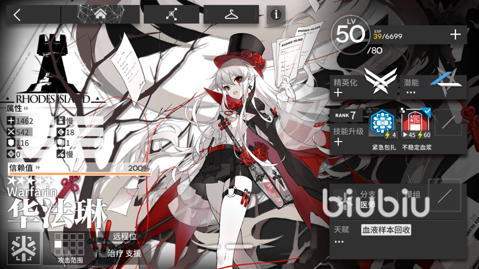 明日方舟中干員的培養(yǎng)可以從三個(gè)角度展開(kāi):角色等級(jí),潛能等級(jí)和技能專精等級(jí)。其中角色等級(jí)決定了干員的基礎(chǔ)面板屬性,也決定了干員是否能夠解鎖額外的技能和天賦。對(duì)于五星干員華法琳而言,其在實(shí)戰(zhàn)中的主要定位是醫(yī)療+輔助,因此對(duì)于等級(jí)要求并不像輸出干員那么嚴(yán)苛,培養(yǎng)華法琳只需要將她的等級(jí)拉到精英化二階段50級(jí)左右即可。
