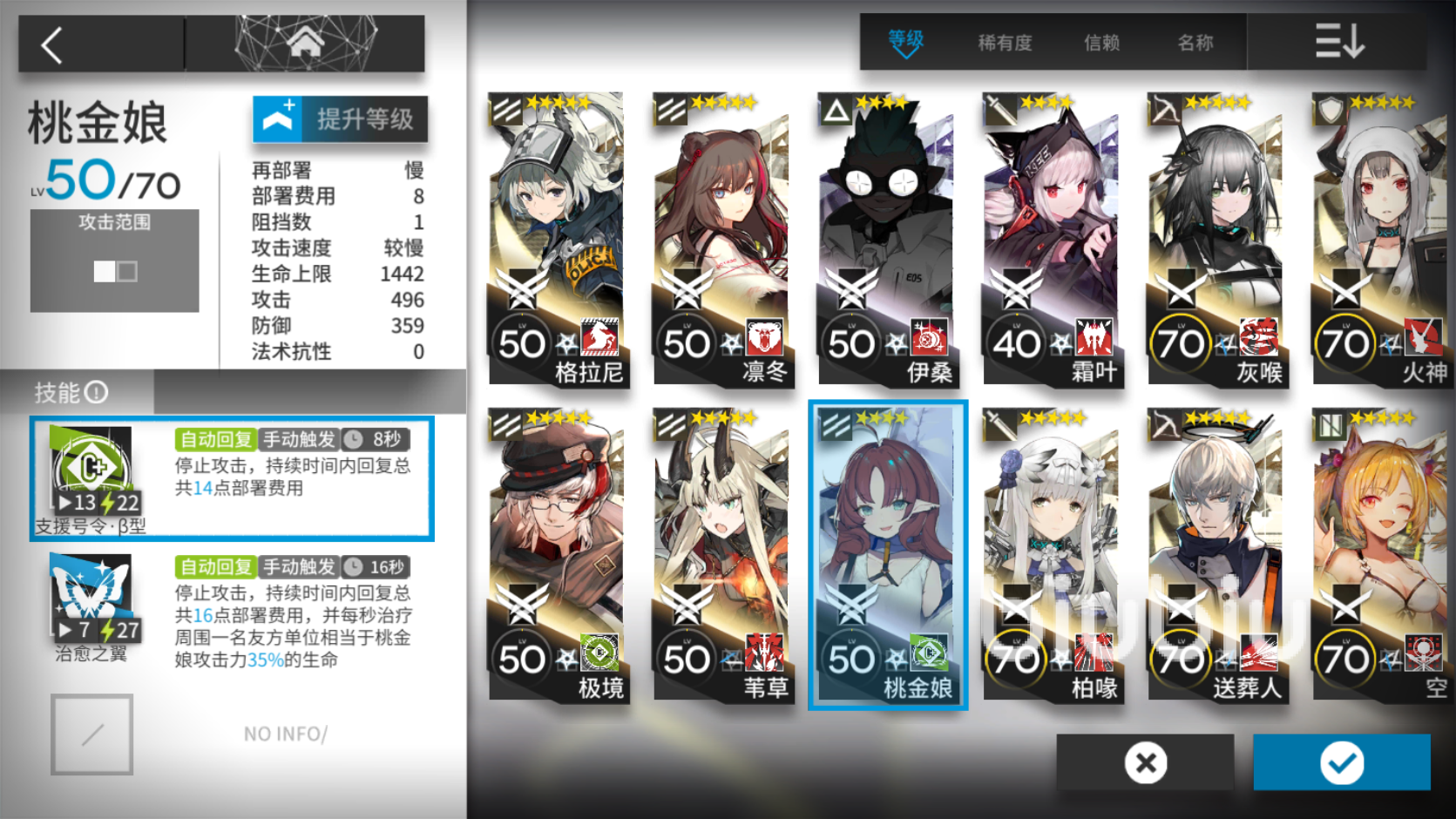 沒(méi)有了德克薩斯,我們就需要使用至少兩個(gè)先鋒才能夠頂住2-7的前期壓力,這里小編選擇的是桃金娘+芬的組合,桃金娘是執(zhí)旗手模組的先鋒,單論回費(fèi)能力比起德克薩斯而言有過(guò)之而無(wú)不及。但是桃金娘本身開(kāi)技能會(huì)漏怪,因此需要靠另一個(gè)先鋒芬補(bǔ)上。這樣一來(lái)我們就成功地用兩個(gè)干員替換掉了德克薩斯,其它干員的選擇就相對(duì)隨意,帶至少兩個(gè)狙擊和一個(gè)術(shù)士即可。
