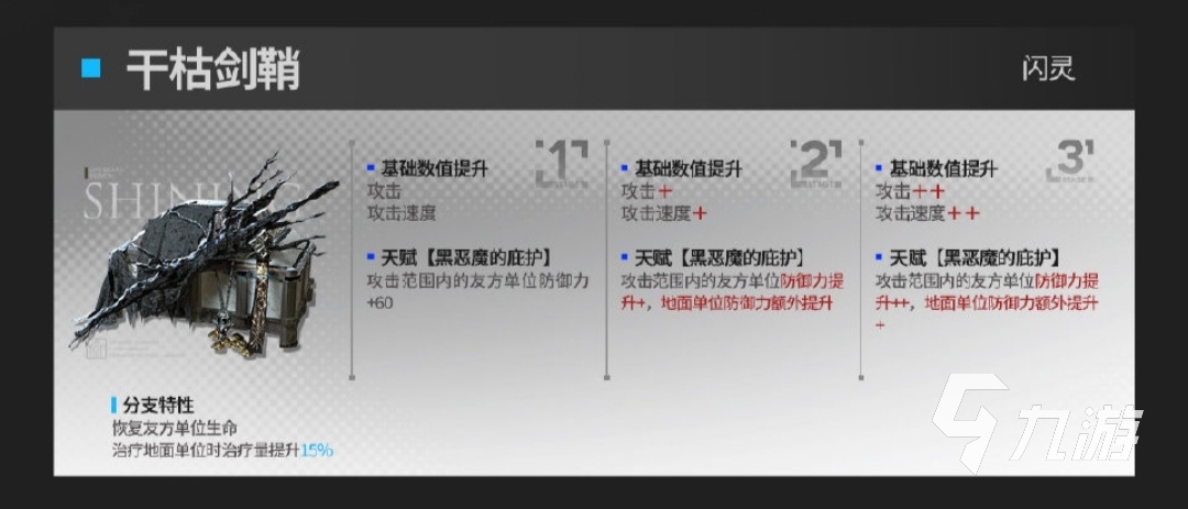 在后續(xù)的等級(jí)提升下,攻擊力和攻擊速度會(huì)得到提升,比起別的醫(yī)療干員增加生命值或是增加防御力比起來(lái),閃靈增加的這兩點(diǎn)屬性可謂是十分出色,因?yàn)獒t(yī)療干員們本就依賴攻擊力的高低,攻擊速度的加成可以讓閃靈出手更快,變相提高了她的治療量,模組增加的攻擊速度配合上第二天賦法典增加的攻擊速度,開啟了高級(jí)模組的閃靈在常態(tài)下會(huì)有非??植赖墓羲俣?,相比起這,天賦增強(qiáng)的防御力反倒是不足稱道了。