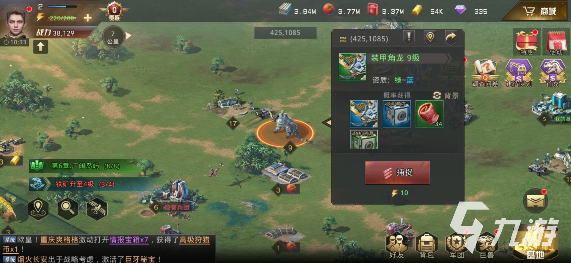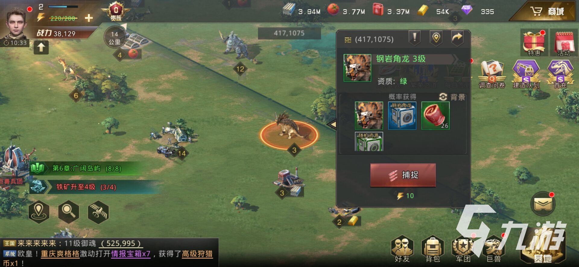 小伙伴可以去到世界地圖之中去,這時(shí)候我們的選擇就非常之多了,可以通過(guò)捕獲恐龍來(lái)進(jìn)行吞噬,這時(shí)候捕捉等等級(jí)的就好了,或者在狩獵中心進(jìn)行抽獎(jiǎng)也是可以的,小伙伴通過(guò)這種方式是可以獲取高等級(jí)的恐龍的,還是非常不錯(cuò)的。