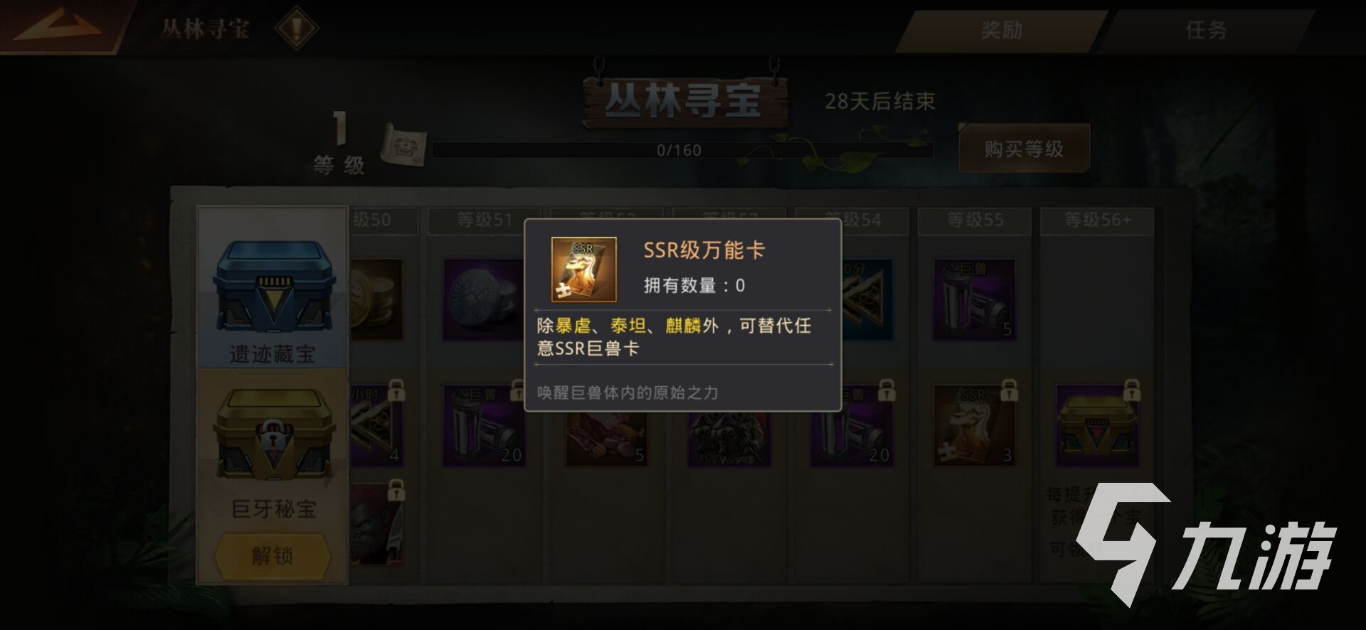 在到達(dá)了最高等級(jí)之后,小伙伴們還可以獲得一張ssr萬能通用卡,這張卡片可以讓小伙伴們獲得任意個(gè)ssr級(jí)別的巨獸,總體上來講,這次的叢林活動(dòng)還是非常給力的,喜歡的小伙伴們可以參與起來。