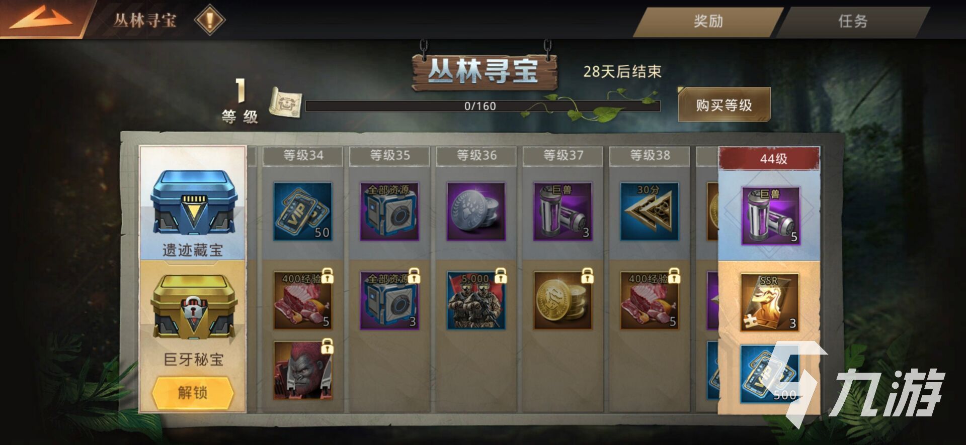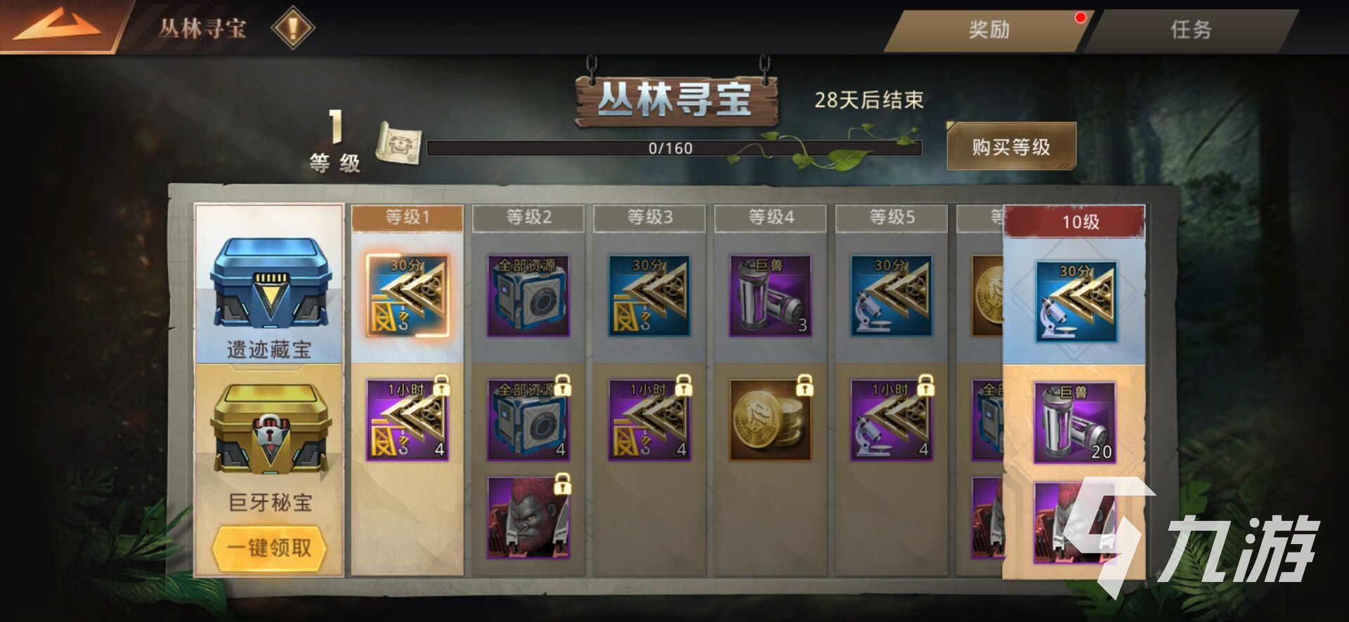 小伙伴們?cè)诰瞢F戰(zhàn)場這款游戲中,通過叢林尋寶能夠獲得的資源是非常豐富的,首先的話,這里有著非常多的小道具,比如說資源補(bǔ)給箱或者科技加速,軍隊(duì)加速這樣的道具是非常之多的,也會(huì)有著一些比較珍貴的資源,比如說普通狩獵幣,巨獸突破藥劑和通用加速卡,這樣的道具對(duì)于我們來說是非常好用的,小伙伴們可以通過完成任務(wù),拓展疆土來提升自己叢林尋寶的等級(jí)來獲得他們。