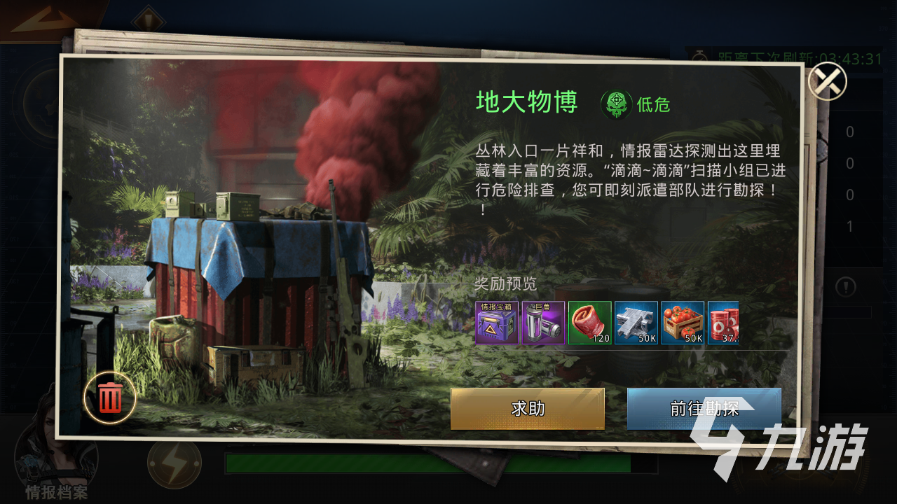 在開啟情報(bào)中心之后,這里可以看到有一個(gè)掃描的設(shè)定,點(diǎn)擊之后可以在一定范圍內(nèi)進(jìn)行掃描,掃描的話就是會(huì)發(fā)現(xiàn)一些特殊的事情。目前的特殊事件是包含有資源、叛軍、巨獸以及士兵等等,不同的發(fā)現(xiàn)在玩法上也是不同的。