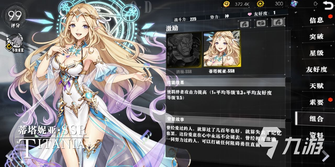 這個角色是新手福利,第二天的簽到獎勵。蒂塔妮亞在遠程伙伴中的傷害很高,以一級為例,當玩家拿出她上陣后,可以直接對敵方主角發(fā)起攻擊,并造成10點攻擊。她還有一個優(yōu)勢,那就是組合技的陣容選擇很多,適合角色較少的玩家。