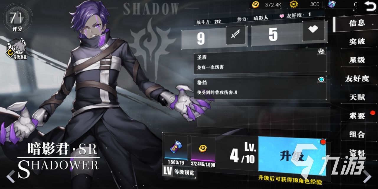 暗影君是第一章中最常出現(xiàn)的一個角色,比較適合前期使用。他的戰(zhàn)斗力和生命值等屬性會隨著等級的提升而升高。暗影君的技能分別為圣盾和格擋,雖然他是個遠程伙伴,但他的技能都具有一定的防御性,比較適合戰(zhàn)斗的前期拿,但是暗影君只建議萌新使用。