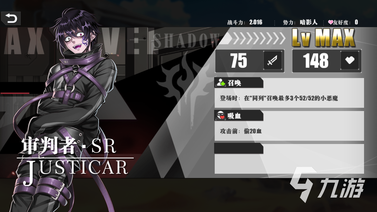 先來(lái)了解一下SR的審判者,這個(gè)品級(jí)的滿級(jí)屬性是75點(diǎn)攻擊力,血量是148點(diǎn),這個(gè)在同品級(jí)的伙伴中還是不錯(cuò)的。技能的話帶有一個(gè)召喚技能,在同列上可以召喚最多三個(gè)小惡魔來(lái)協(xié)助攻擊。小惡魔的屬性是52攻擊和血量的。第二個(gè)技能是吸血,吸血單位的話能力還是不錯(cuò)的,可以在攻擊前偷取血量來(lái)補(bǔ)充,在實(shí)戰(zhàn)中是有不錯(cuò)優(yōu)勢(shì)的。