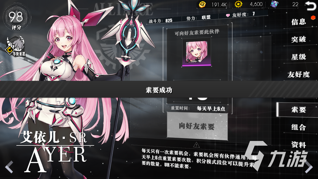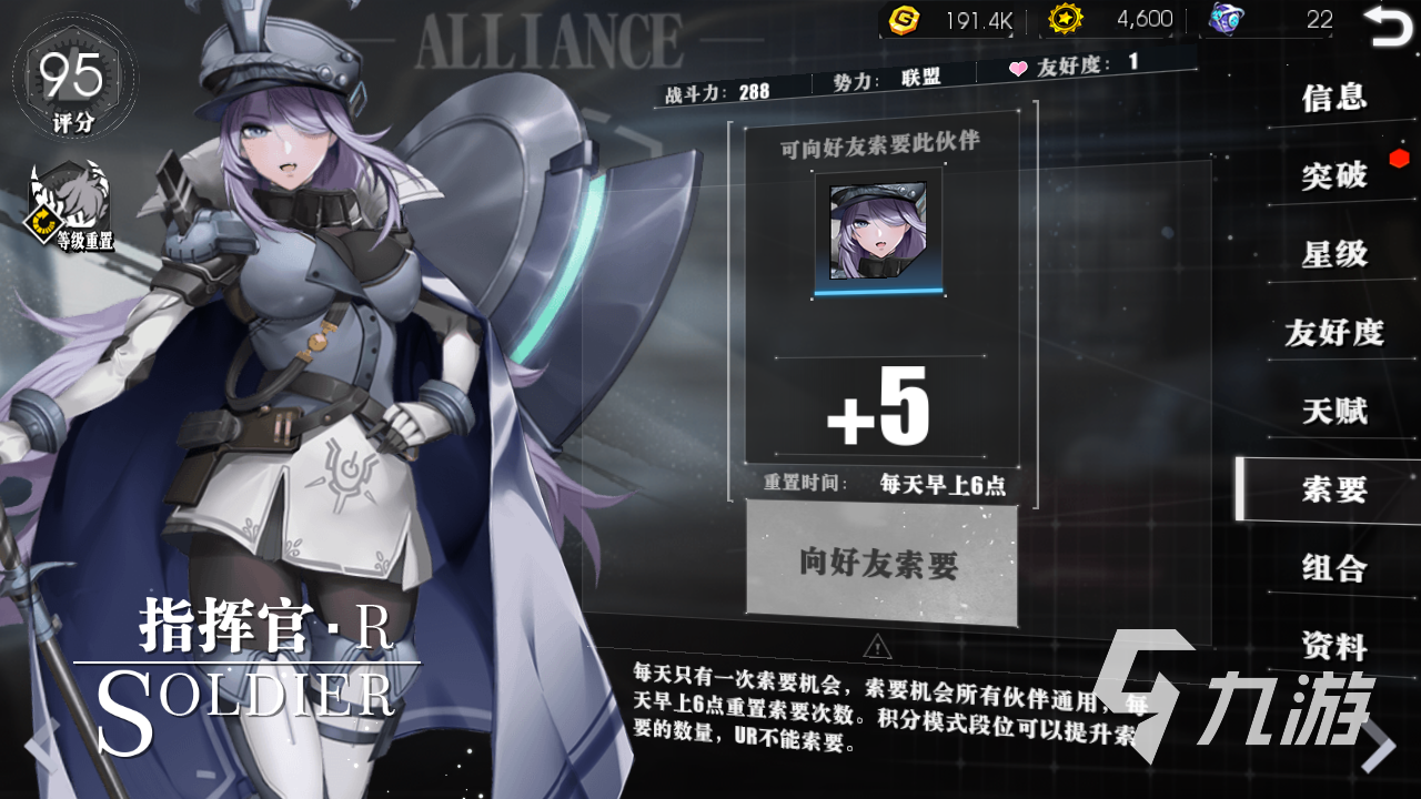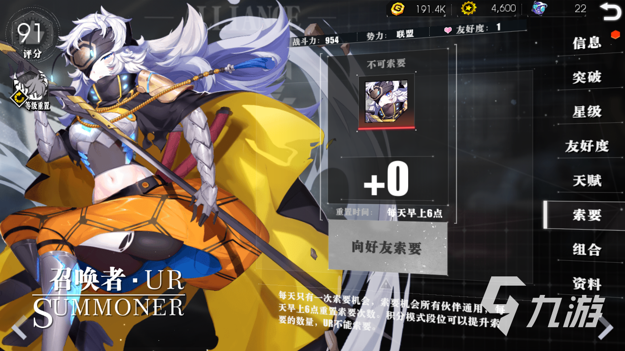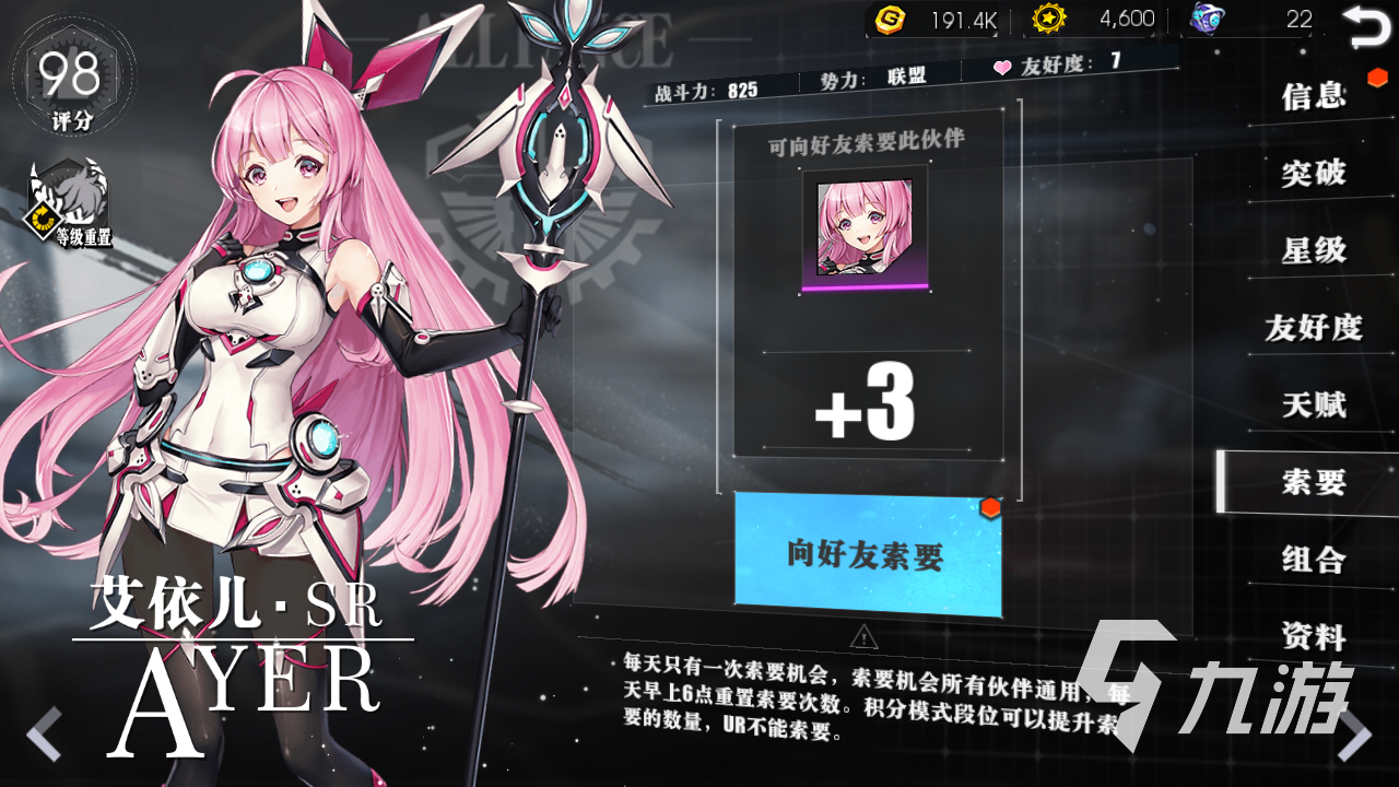 第一點(diǎn)就是索要的次數(shù),這個(gè)次數(shù)的話每日是只有一次機(jī)會(huì)的,所有的伙伴都是通用的,這個(gè)次數(shù)每日凌晨會(huì)恢復(fù),要合理的利用好這個(gè)機(jī)制。所以說在選擇索要伙伴的時(shí)候,盡量的選擇優(yōu)先級(jí)高一些的比較好,可以獲得不錯(cuò)的獎(jiǎng)勵(lì)。