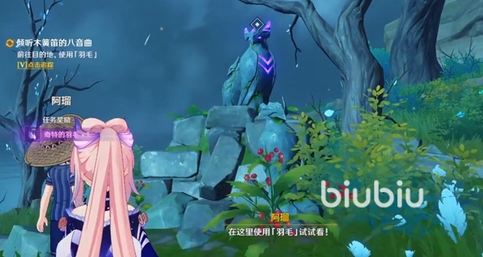 其實(shí)逢岳之野任務(wù)就是世界任務(wù)傾聽木簧笛的八音曲中的一環(huán),我們需要來到稻妻城找到墨田進(jìn)行對(duì)話,隨后進(jìn)入到鶴觀與阿榴對(duì)話,跟隨阿榴可以獲取奇特的羽毛。原來雷鳥的羽毛就是最原始的木簧笛,我們根據(jù)任務(wù)指引來到逢岳之野地區(qū),可以看到一個(gè)雷鳥雕像,使用羽毛之后與幻影阿釜進(jìn)行對(duì)話。