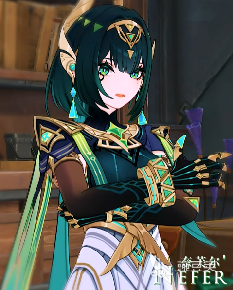 ”圣約·真眸幻戲”施放,對前方的對手造成草元素的范圍損傷,使用過程中,還會使用掉所有的”偽秘之帷”,從而提高本次元素爆發(fā)造成的傷害。從技能效果不難看出,該角色能飛,會時停,有草盾,還擁有分身效果,能打出多段傷害,整體還是比較有意思的。