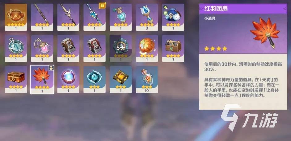 紅羽團扇小玩家挺過提升稻妻聲望才能獲取,三十秒內(nèi)的時間能提升百分之三十的滑翔速度。這個團扇還是很不錯的,能節(jié)省會多時間。