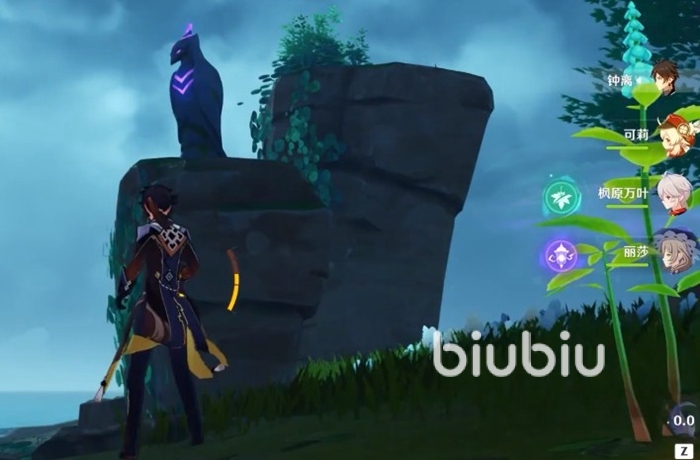 第七個(gè)是在逢岳之野南面這里,我們傳送到惑飼灘西邊的這個(gè)傳送錨點(diǎn)去,在溪流的旁邊可以看到這個(gè)雷鳥雕像了。