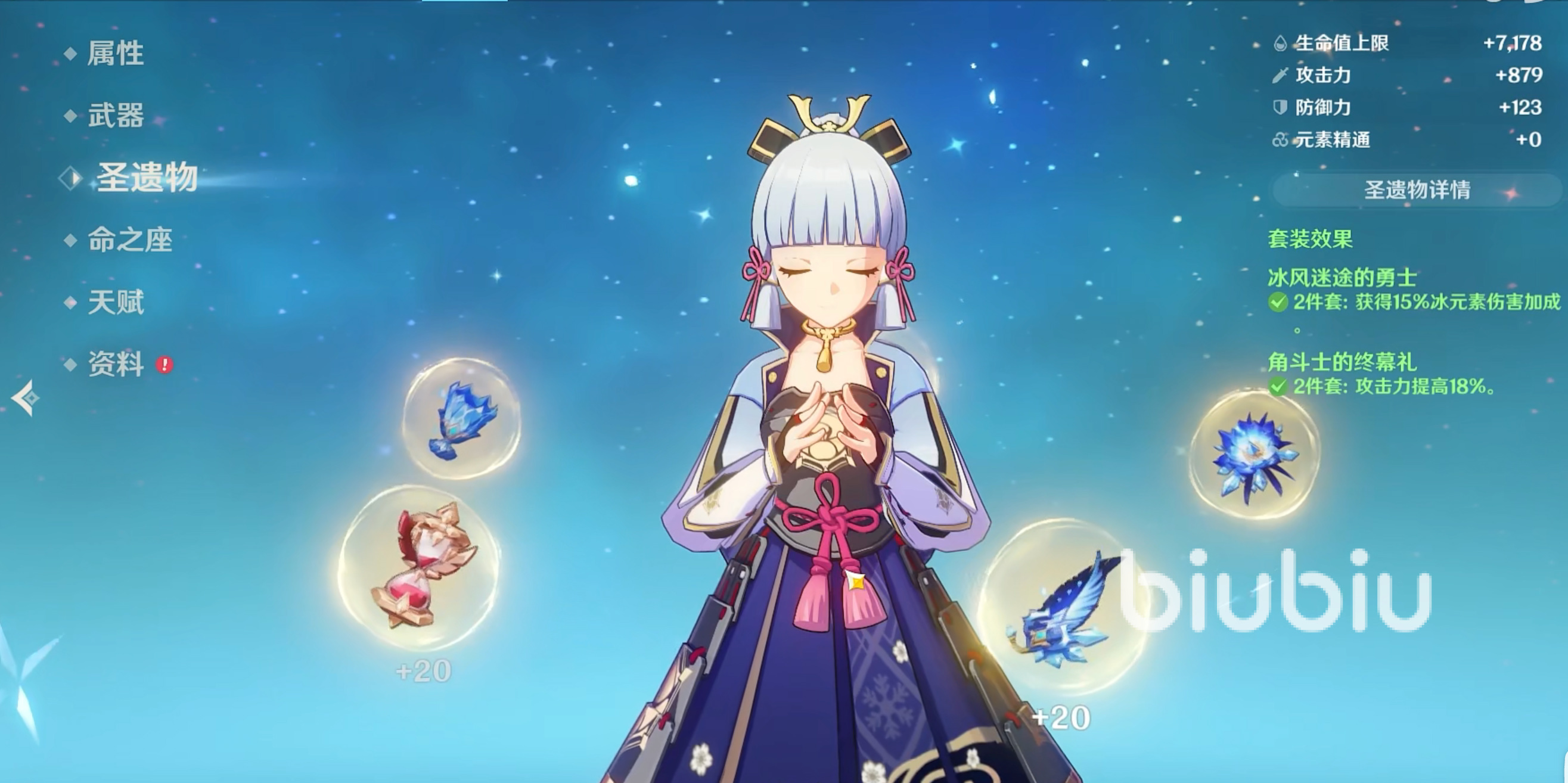 在武器方面,霧切之回光是首要選擇,如果沒有的話,其他五星單手劍也是可以的。圣遺物的話,冰套4是比較推薦的選擇,如果攻擊比較高的話,也可以用2冰套加2角斗士,這樣會更穩(wěn)定一些。