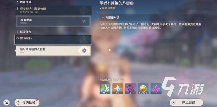 在我們完成要求特別多的作家任務(wù)之后第二天就會(huì)開啟霧海紀(jì)行新的任務(wù)傾聽木簧笛的八音曲世界任務(wù)。來到任務(wù)指引地點(diǎn)找到墨田觸發(fā)劇情,總之我們現(xiàn)在就要前往尋找木簧笛。