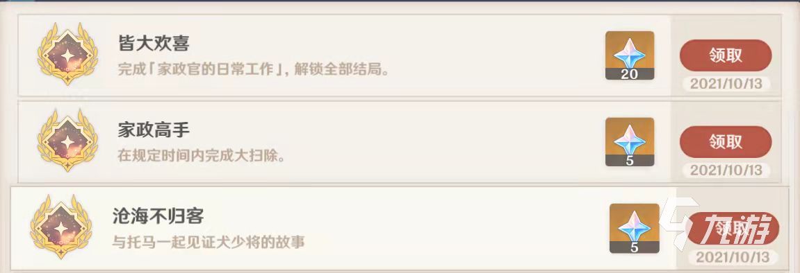 1.家政高手:在獨處時光中,在規(guī)定時間內(nèi)完成大掃除。(5原石)