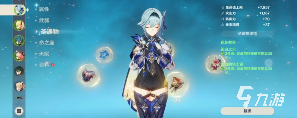 圣遺物方面,小編推薦騎士2、蒼白2,或者也可以直接蒼白4件套都是可以的。騎士2和蒼白2的搭配優(yōu)點(diǎn)是比較的穩(wěn)定,缺點(diǎn)就是上限比較的低,比不上蒼白4件套。
