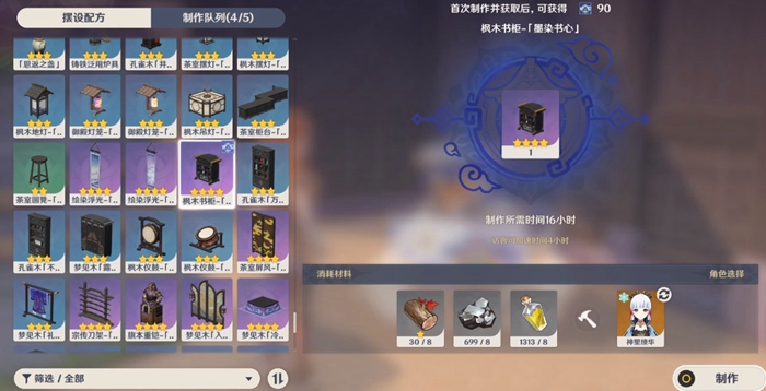 楓木書柜墨染書心其實(shí)是家具套裝沉墨書舍中的一個(gè),珊瑚宮心海是比較喜歡這套家具的。除了楓木書柜墨染書心之外,還有茶室燭臺(tái)無味火、楓木地?zé)粽粘巍髂緯袂Ь砉癫?、茶室長桌座無隙、茶室坐墊晚禾織、茶室屏風(fēng)垢身金心、鑄瓷正則、紙墨筆硯正定筆鋒以及赤鐵珊瑚等家具。