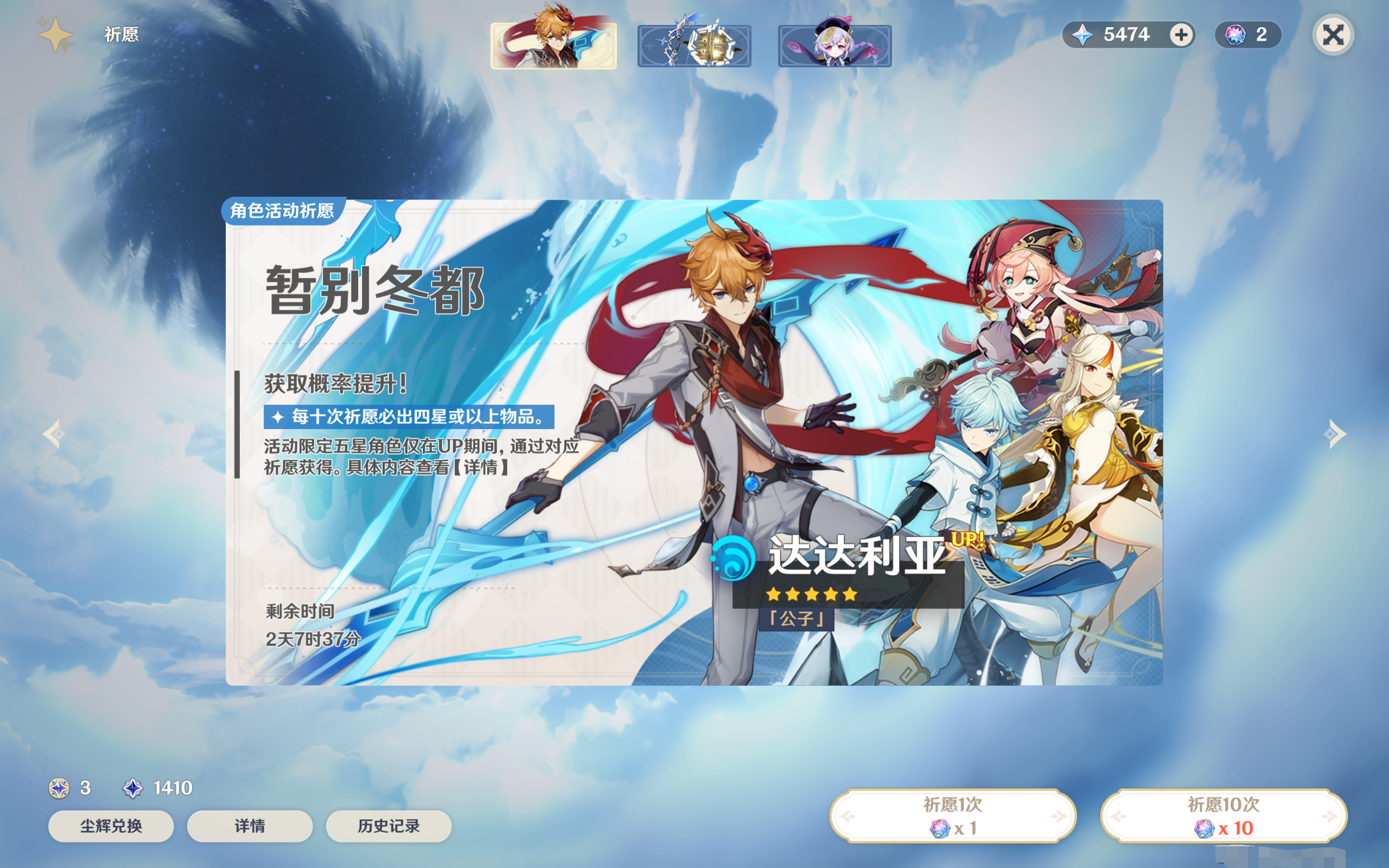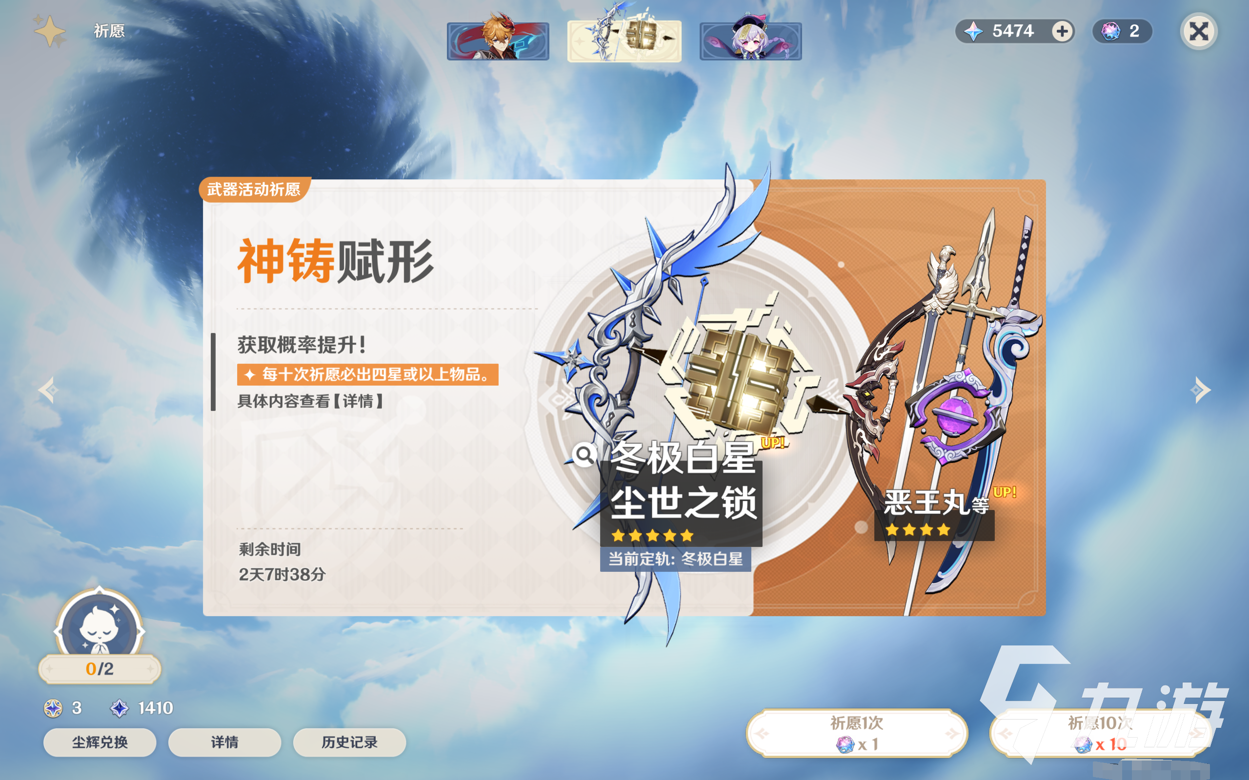 這期武器池中的兩把五星武器分別是塵世之鎖和冬極白星,冬極白星是一把弓箭武器,默認(rèn)是公子達(dá)達(dá)利亞的專屬武器,另外這期up角色池的五星角色就是達(dá)達(dá)利亞,如果小伙伴們抽到公子或者之前就有公子的話,那么小編建議大家去抽冬極白星這把武器,畢竟這樣可以大幅度提升我們隊(duì)伍的戰(zhàn)斗力。