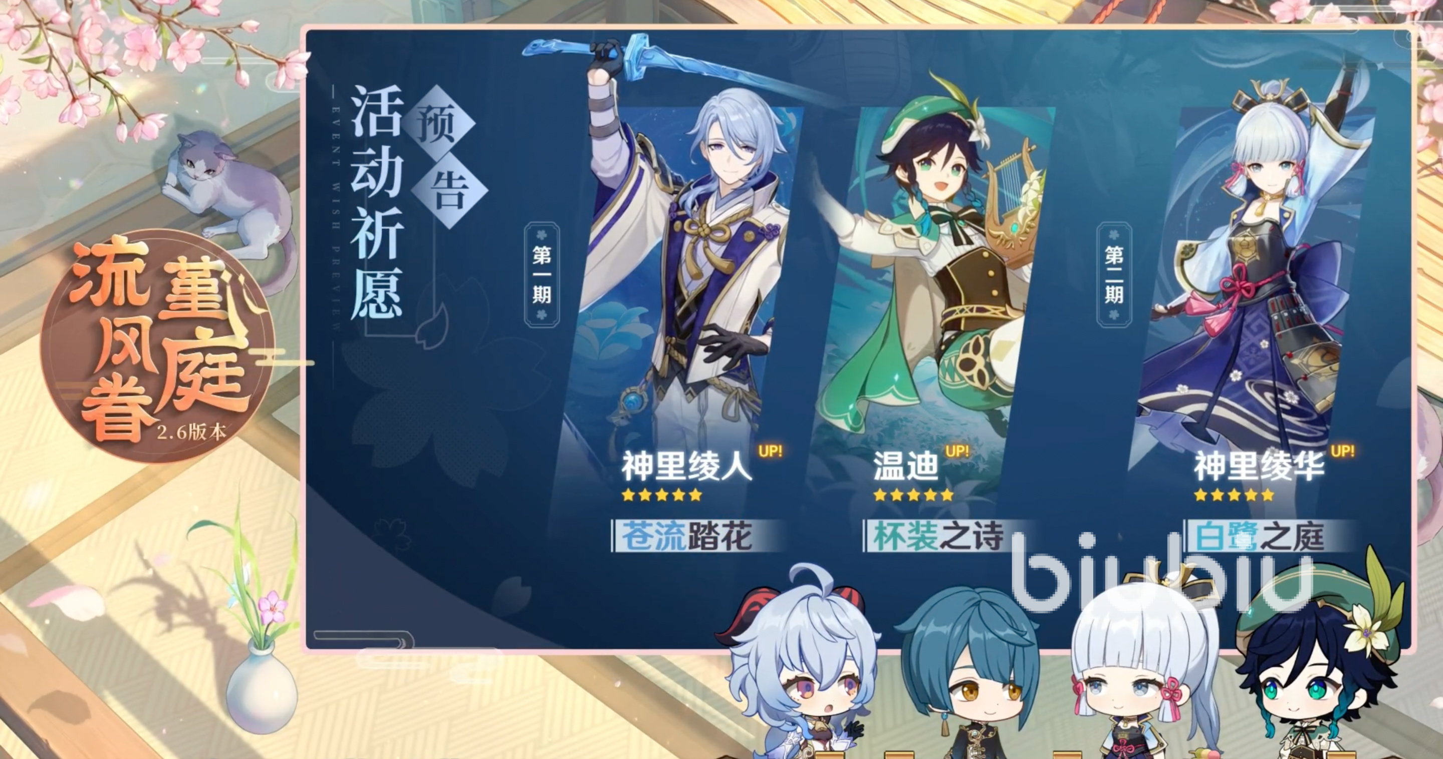 目前已經(jīng)確定上線的三位角色為神里綾人、溫迪和神里綾華,其中神里綾華為下半場。