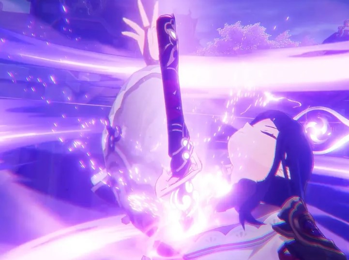 開啟大招后將軍的武器將轉(zhuǎn)化為武士刀,在武士刀出現(xiàn)的一瞬間會造成大量的雷屬性傷害,并且之后每次普通攻擊都有雷屬性傷害,持續(xù)時間為七秒。如果是低命的雷神則無法放在主c位置,當命座超過兩命后,就可以拿來充當主c了。
