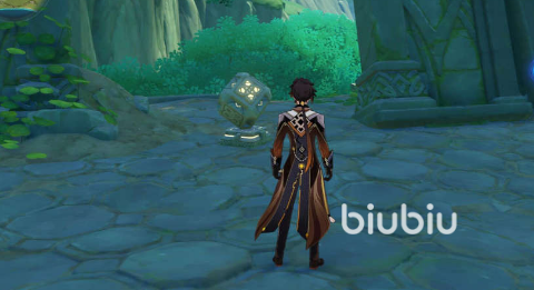 首先需要玩家寫(xiě)到草屬性角色來(lái)到二凈甸的能夠神像的傳送點(diǎn)位置,然后可以向廢墟的方向那邊走,一邊清怪一邊往下走,走到圖中嘆號(hào)的位置就能夠看到機(jī)關(guān)了。