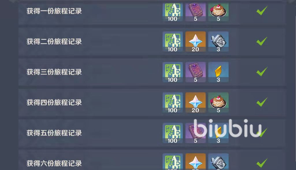 每完成一共結局就可以領取一份旅程記錄結局獎勵: