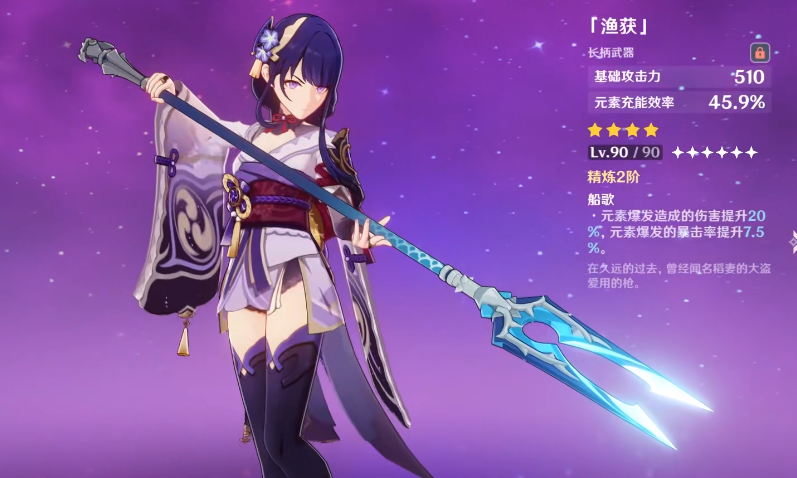 作為四星的長柄武器,其武器特效在元素爆發(fā)時造成的傷害可以提升16%,而元素爆發(fā)的暴擊率會提升6%。我們可以在稻妻的釣魚協(xié)會處用材料兌換到漁獲,以及它的精煉道具。
