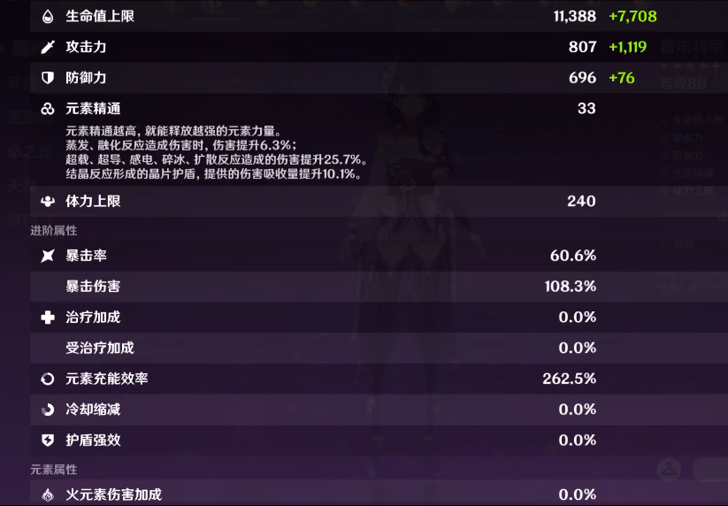 每升10級,基礎攻擊力與元素充能效率各提升50點左右,所以在60級時,基礎攻擊力達到了320點以上,元素充能效率也提升至33.8%。