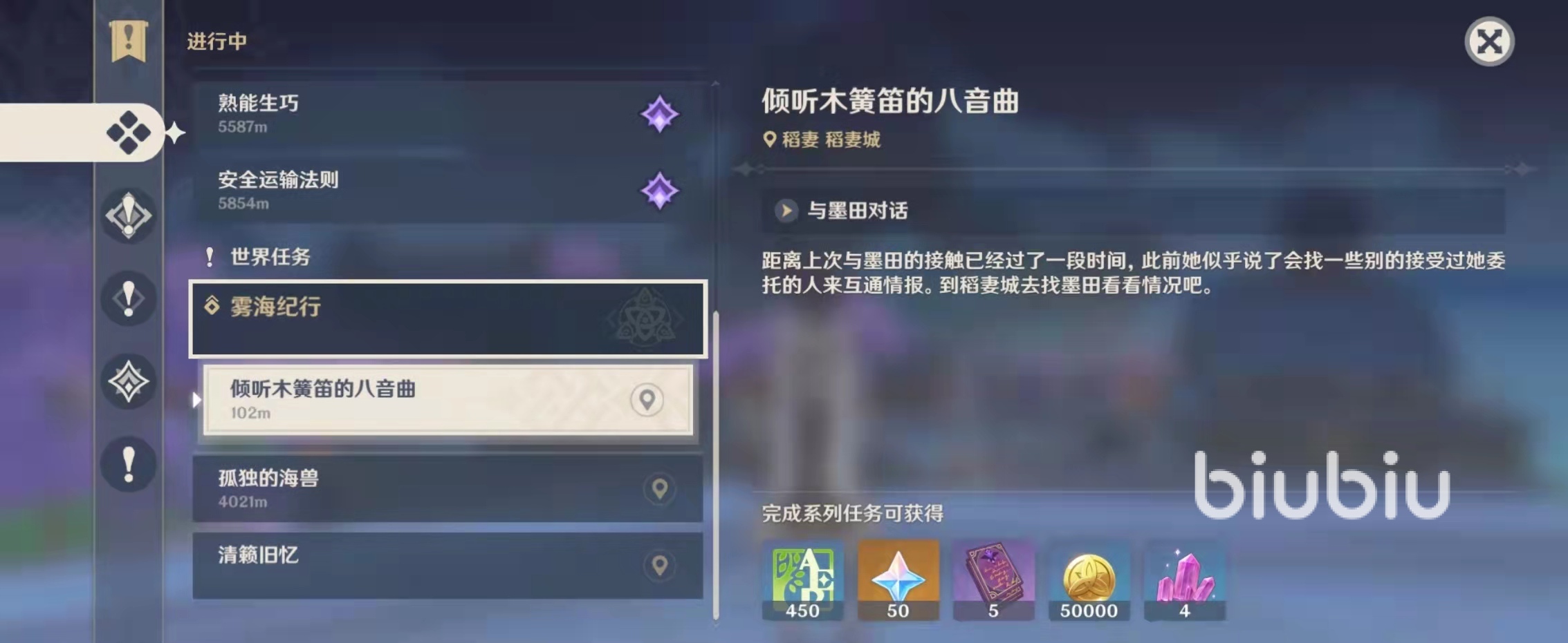 這一系列任務都是霧海紀行中的一部分,最后一天的任務迷霧變成了紅色,步驟還是原來一樣。最后一個任務完成時就會完成一個成就,鶴觀島的迷霧到此全部結束。