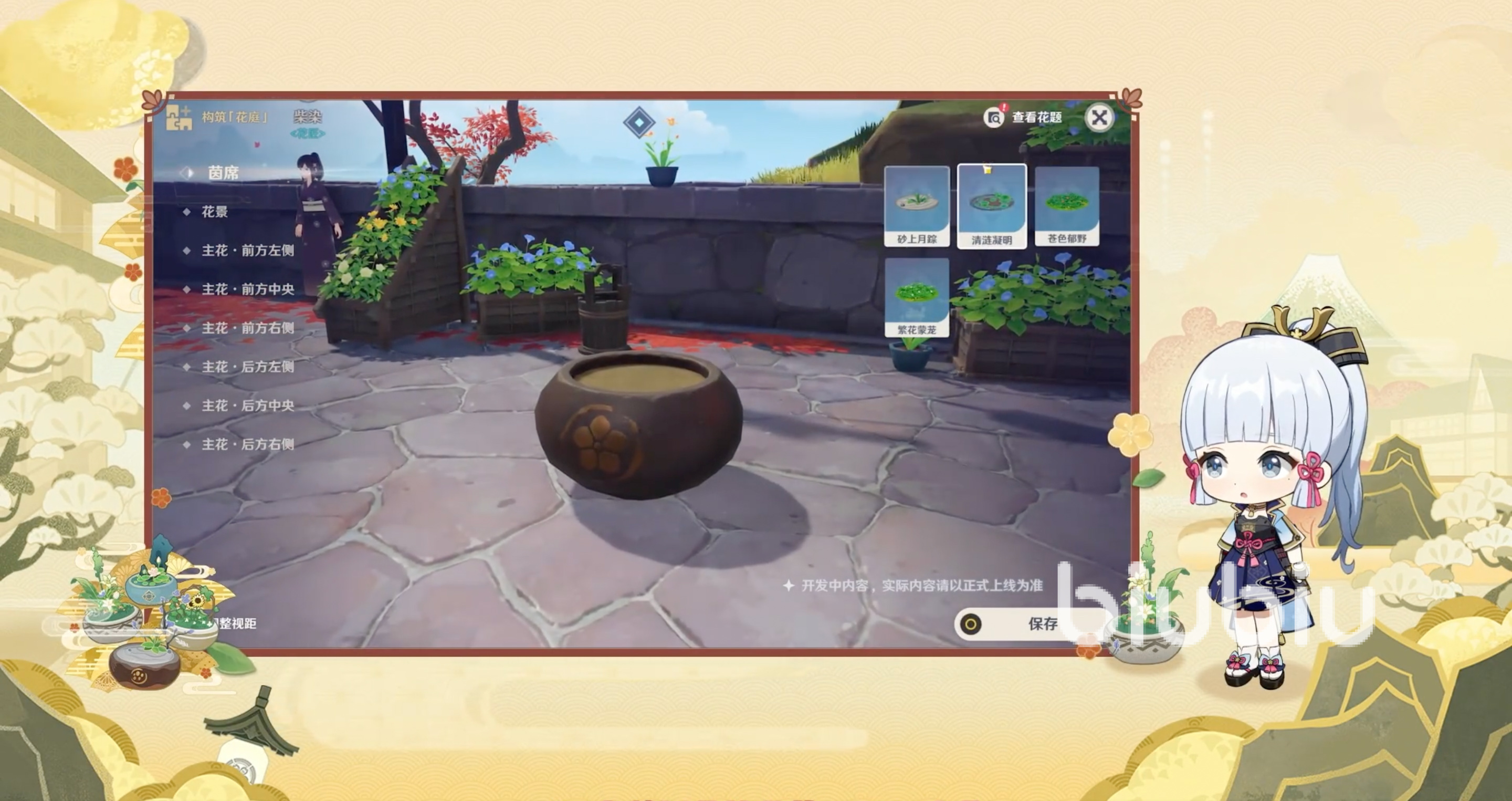玩家根據(jù)花匠給出的主題插花,通過選擇合適的花卉和造型來表現(xiàn)主題,并裝飾在花庭中?;ㄍビ卸鄠€小插花組成的,需要玩家考慮相互之間如何配合協(xié)調(diào)一致?;顒咏Y(jié)束之后,插花擺件會進入塵歌壺內(nèi),玩家可以自由選擇擺放。