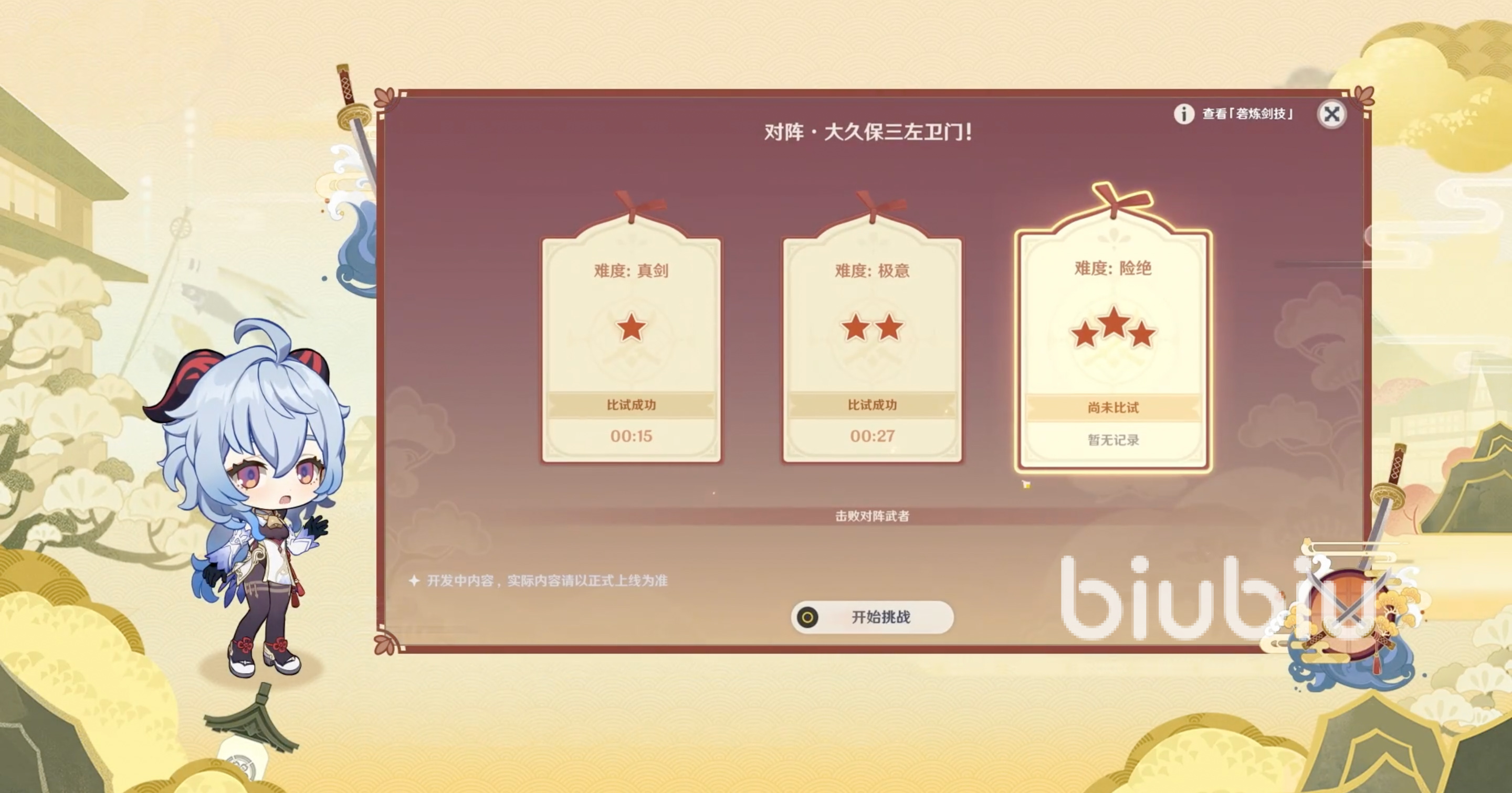 活動有三種難度可以選擇,玩家僅能使用格擋,元素戰(zhàn)技和元素爆發(fā)不能使用,這是一次關(guān)于劍技的比拼。