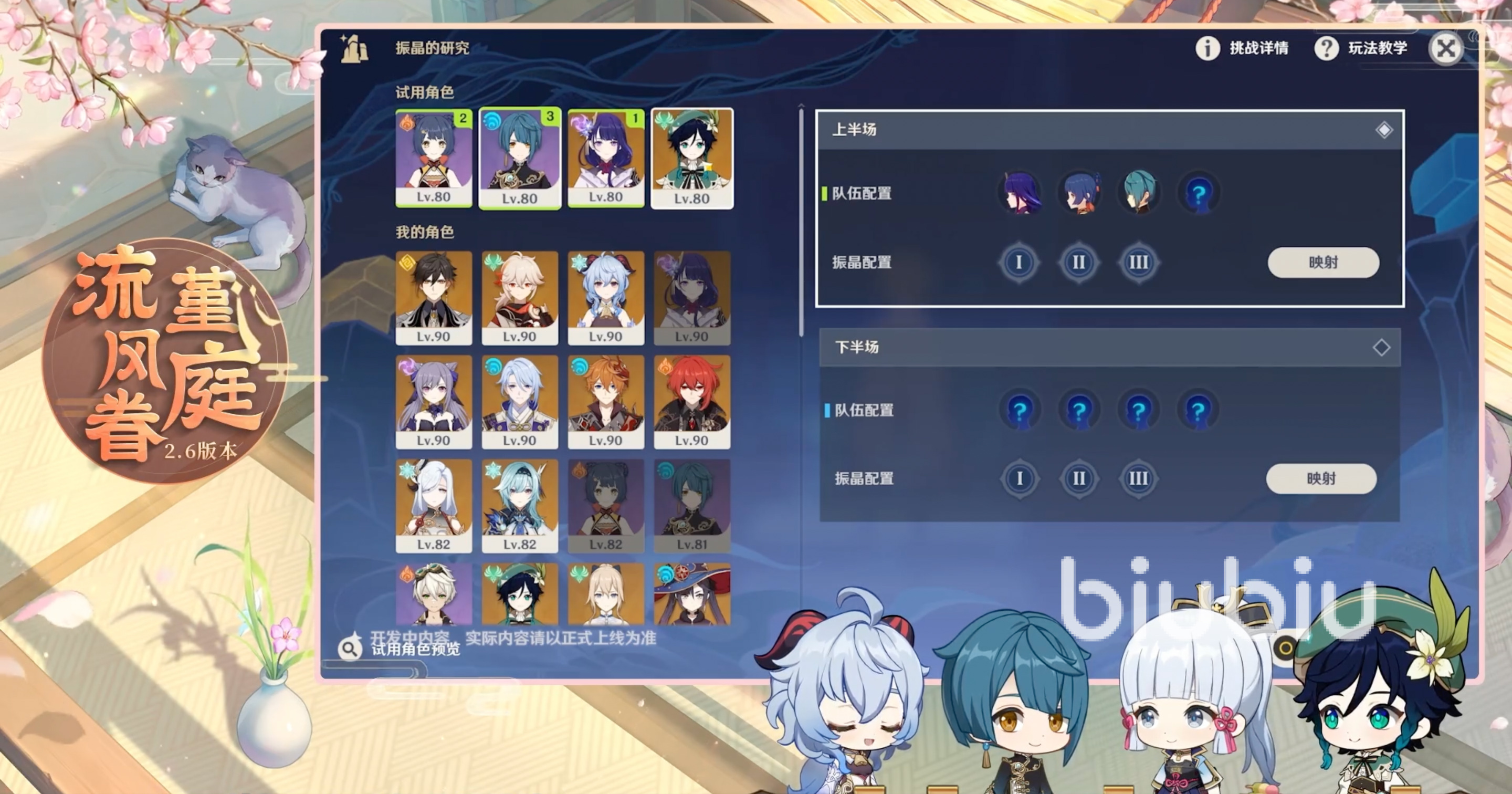 振晶的研究挑戰(zhàn)活動將在2.6版本中上線,每次實驗分為上下兩場戰(zhàn)斗,需要玩家組兩個隊伍,共計需要8個角色,其中角色不能重復選擇。