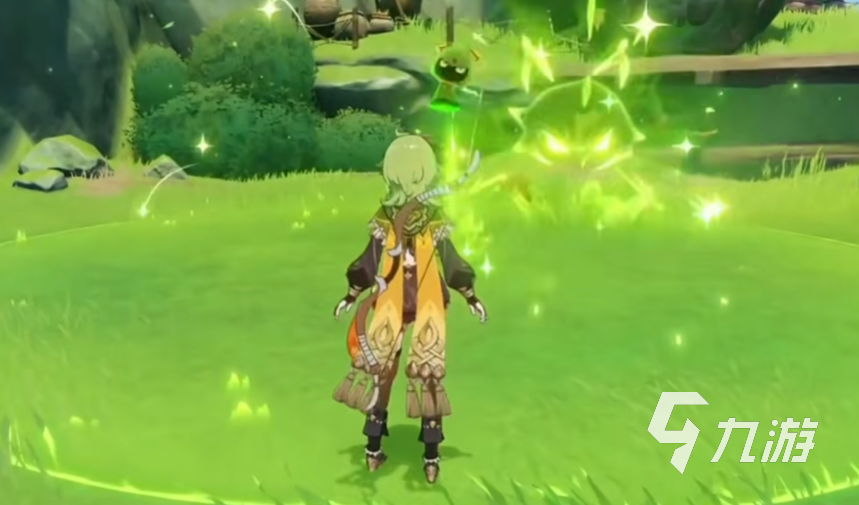 柯萊的重?fù)粜Ч沁M(jìn)行傷害更高更為精確的瞄準(zhǔn)射擊,在瞄準(zhǔn)的時(shí)候,會(huì)有草元素附著在弓箭上。然后蓄滿了草元素的弓箭產(chǎn)生草元素傷害。
